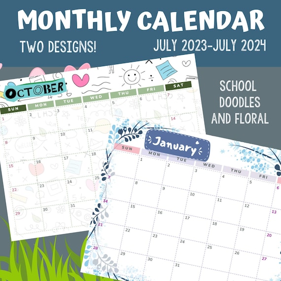 Monthly Printable Calendar Pages July 2023 july 2024 Academic Etsy